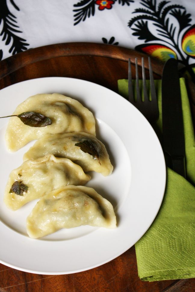 Pierogi ze szpinakiem podawać z masłem szałwiowym (2 łyżki masła rozpuścić w rondelku razem z kilkoma listkami szałwii)
