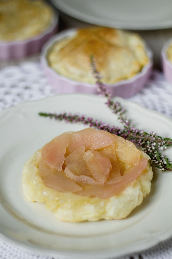 W planie mam przygotowanie różnych słodkości na bazie czekolady. Ciągle jednak odkładam je na później, bowiem żal nie skorzystać z tego, na co jest teraz sezon. Stąd jabłka w kolejnej odsłonie :) Minia tarta tatin z jabłkami może być dodatkiem do kawy lub może stanowić drugie śniadanie ze szklanką mleka. Może być również spełnieniem zachcianki na coś słodkiego, bowiem robi się ją błyskawicznie.