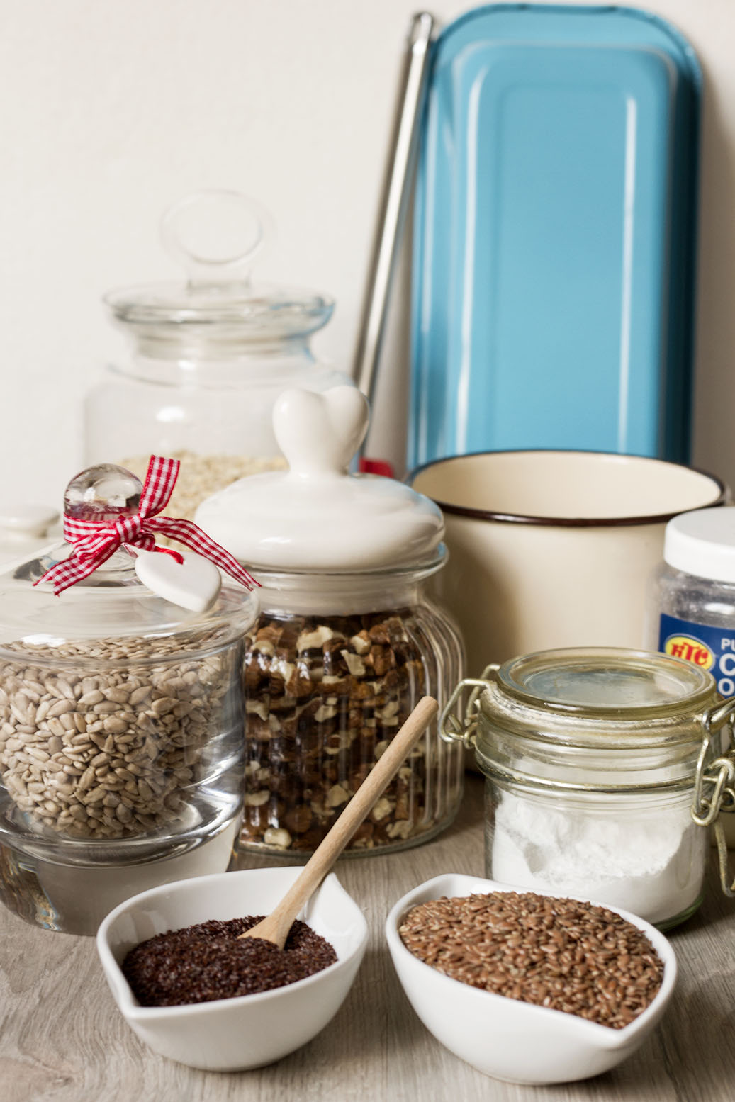 Nasiona babki płesznik mają w tym przepisie za zadanie scalić pozostałe składniki, bez użycia mąki. Nasiona w kontakcie z wodą natychmiast pokrywają siÄ™ śluzem. Nasiona babki płesznik to jedno z najbogatszych źródeł błonnika.