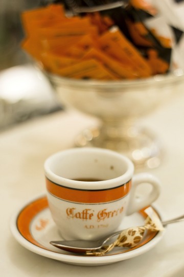 Antico Caffe Greco w Rzymie jest miejscem z historią, gdyż jest prawie najstarszą nadal funkcjonującą kawiarnią we Włoszech (najstarsza to Caffè Florian w Wenecji – 1750r). Została założona w 1760 roku przez Greka i stała się salonem artystycznym, w którym bywał m.in Goethe, Byron, Andersen, Ibsen, Mendelssohn oraz nasi rodacy: Mickiewicz, Słowacki, Norwid, Krasiński, Sienkiewicz.