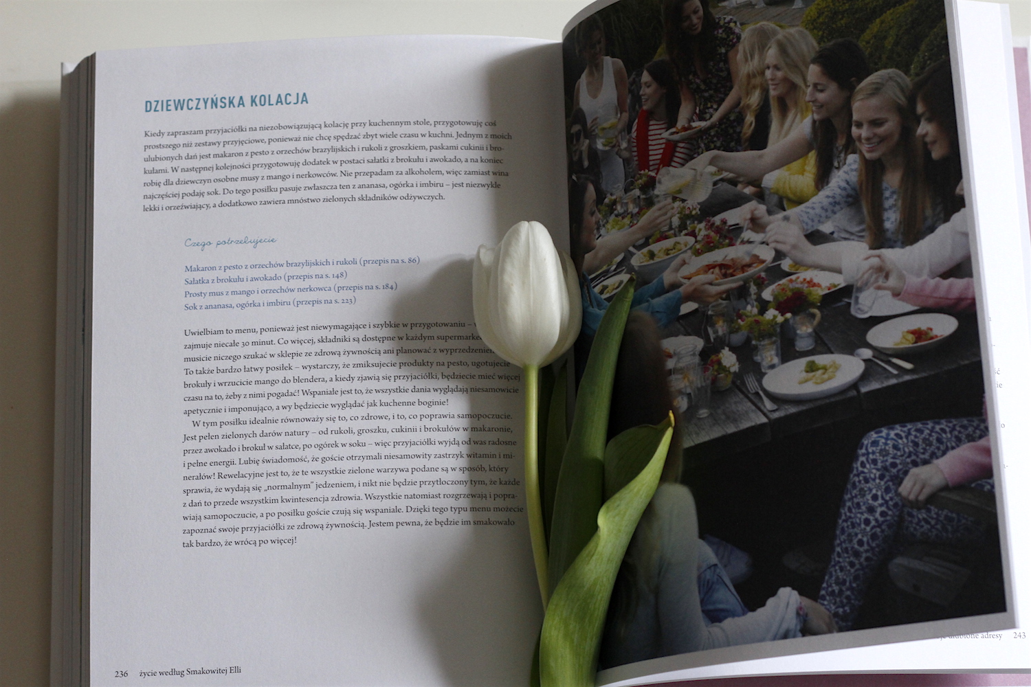 Smakowita Ella to dla mnie duże, pozytywne zaskoczenie. Po pierwsze, dzięki książce odkryłam jej bloga (dotąd mi nieznanego). Po drugie, odkryłam w książce wiele ciekawych, w nienachalny sposób podanych treści. Po trzecie, jest pięknie wydana - to jedna z tych książek, które można przeglądać bez przerwy (sami zobaczcie) :) Po czwarte, odkryłam podobieństwo (poza prowadzeniem bloga), tj. zainteresowanie kulinariami na skutek choroby i konieczności przejścia na dietę. To sprawia, że przepisy są bardzo wiarygodne. Są stworzone przez osobę, która wcześniej nie gotowała i nie przykładała wagi do jedzenia.